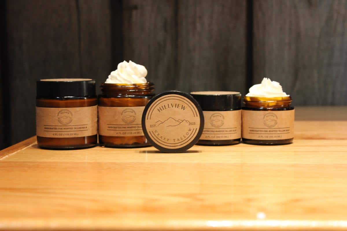 Hillview Craft Tallow Skin Cream is made in small batches of 10- 4 oz jars and 12- 2 oz jars on our farm in Shipman,